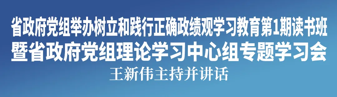 按照党中央统一部署及省委具体安排,3月27日,省政府党组举办树立和践行正确政绩观学习教育第1期读书班暨省政府党组理论学习中心组专题学习会,省委副书记、省长、省政府党组书记王新伟主持并讲话。他强调,要深入学习领会习近平总书记关于树立和践行正确政绩观的重要论述,牢牢把握“立党为公、为民造福、科学决策、真抓实干”总要求,坚持实事求是、求真务实,为人民出政绩、以实干出政绩,以勇于争先、谱写新篇展现更大担当和作为。